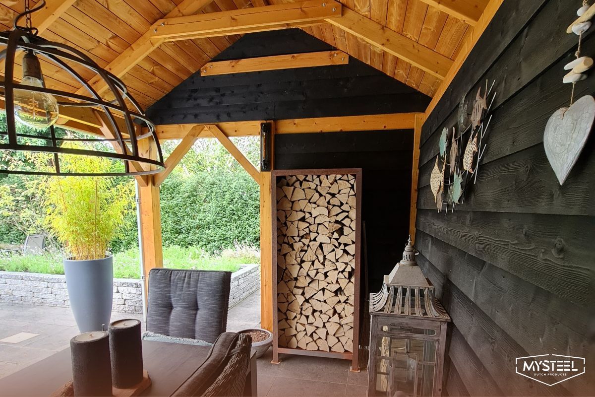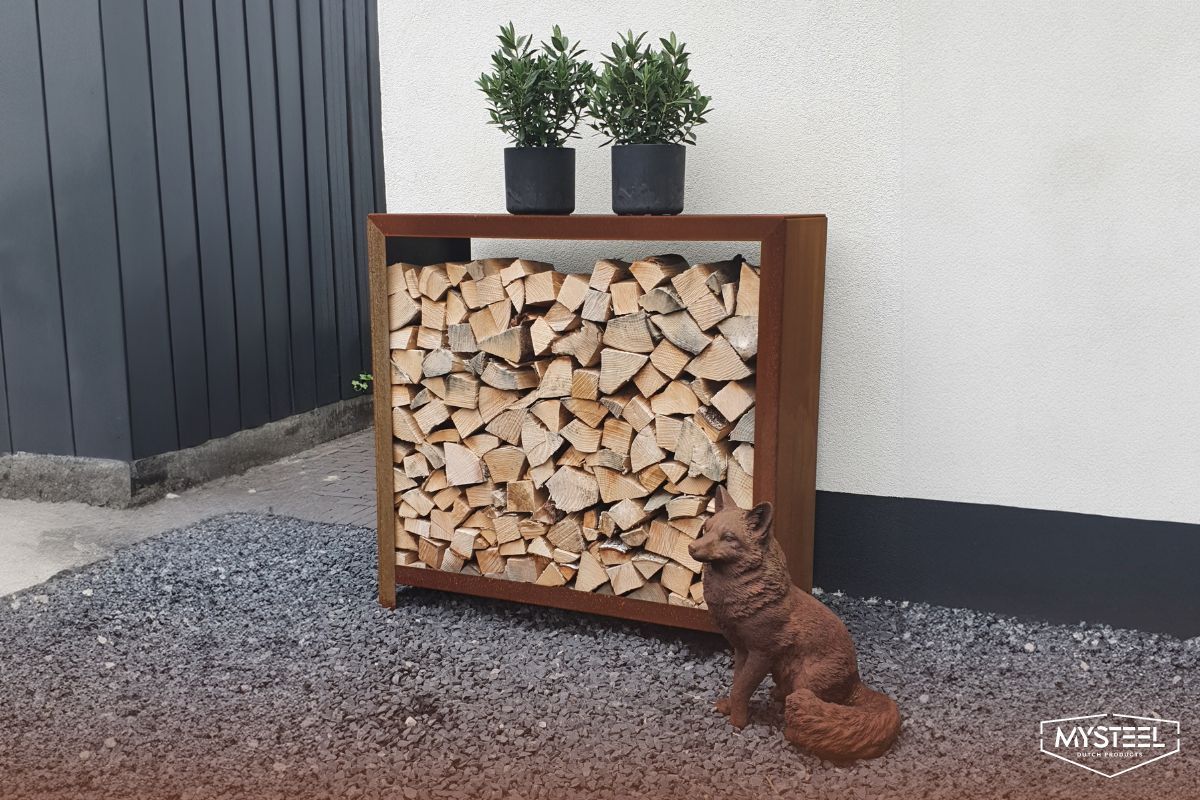 - Achten Sie auch darauf, dass die Rückseite des Lagers nicht vollständig geschlossen ist. So kann die Luft besser zirkulieren. Die Cortenstahl-Holzlager und die Stahl-Holzlager von MySteel sind zum Beispiel an der Rückseite offen.