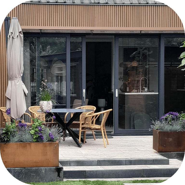 U-Profile aus Cortenstahl sind eine kreative Möglichkeit, bestehende Strukturen wie Abdecksteine oder Beton zu verschönern. Das ist zum Beispiel schön für die Ränder einer alten Terrasse oder einer Betonstützmauer. Sie schaffen einen schönen Kontrast zwischen Alt und Neu und sorgen für Harmonie im Außenbereich.
