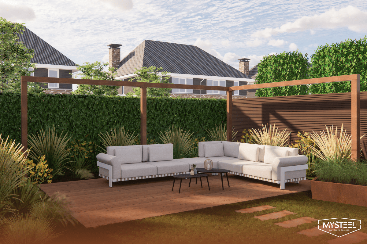 Darüber hinaus hat Stahl ein modernes Aussehen und ist in verschiedenen Farben erhältlich. Bei MySteel erhalten Sie Pergolen aus Stahl in Cortenstahl und 204 pulverbeschichteten Farben. So können Sie immer eine Farbe wählen, die gut zu Ihrem Garten passt. Erfahren Sie mehr über unsere Modelle im Abschnitt Pergolen von MySteel in verschiedenen Farben.