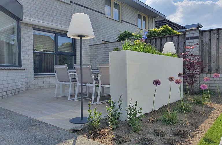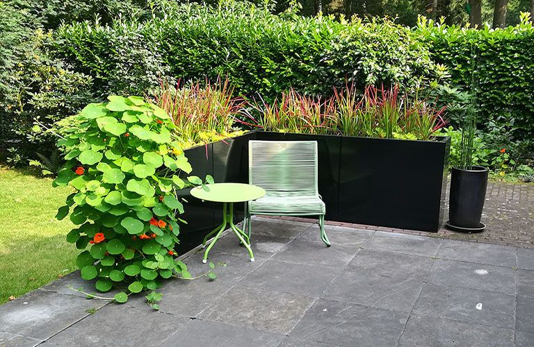 Möchten Sie in Ihrem Garten oder auf Ihrer Terrasse eine gemütliche Ecke einrichten, in der Sie Ihre Privatsphäre genießen, windgeschützt sitzen und gleichzeitig das Grün um Sie herum genießen können? Wenn ja, haben Sie dann schon einmal an hohe Pflanzgefäße aus Stahl gedacht? Schmale, hohe Pflanzgefäße nehmen als Raumteiler wenig Platz ein, schaffen aber eine schöne, grüne Oase im Garten. Daher eignen sich diese Pflanzgefäße sehr gut als Terrassenabtrennung! Einige unserer Kunden haben auch einen Pflanzkübel als Trennwand verwendet. Wir haben für Sie eine Top 7 mit schönen Fotos unserer Kunden zusammengestellt, lassen Sie sich also inspirieren!