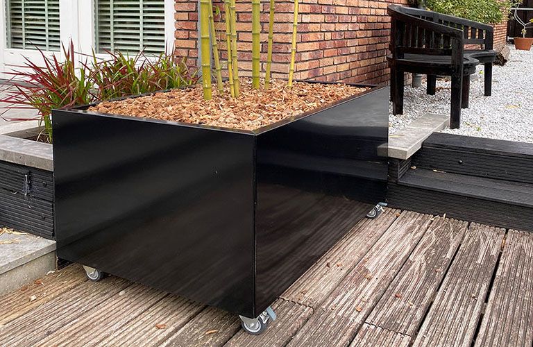Möchten Sie Ihren Terrassenzaun von Zeit zu Zeit versetzen können? Dann entscheiden Sie sich für einen mobilen Terrassentrennwand-Pflanzer! Für unsere kleineren Pflanzgefäße können Sie im Webshop die Option 'Bodenplatte + 4 Räder' wählen. Der Pflanzkübel wird als Bausatz geliefert und die Räder drehen sich im Handumdrehen darunter. Sie sind weniger auffällig, ermöglichen es Ihnen aber dennoch, die Vorteile einer mobilen Terrassenumzäunung zu genießen. Beachten Sie, dass jedes Rad 50 Kilo tragen kann. Ist das Gewicht zu hoch? Dann können die Räder unter dem Gewicht zusammenbrechen.