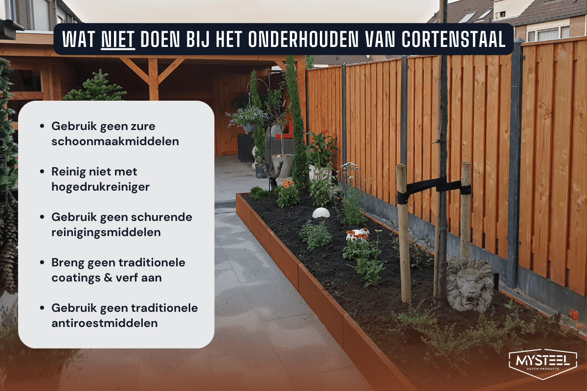 Die Pflege von Cortenstahl ist recht einfach, aber es gibt einige häufige Fehler, die man am besten vermeiden sollte: