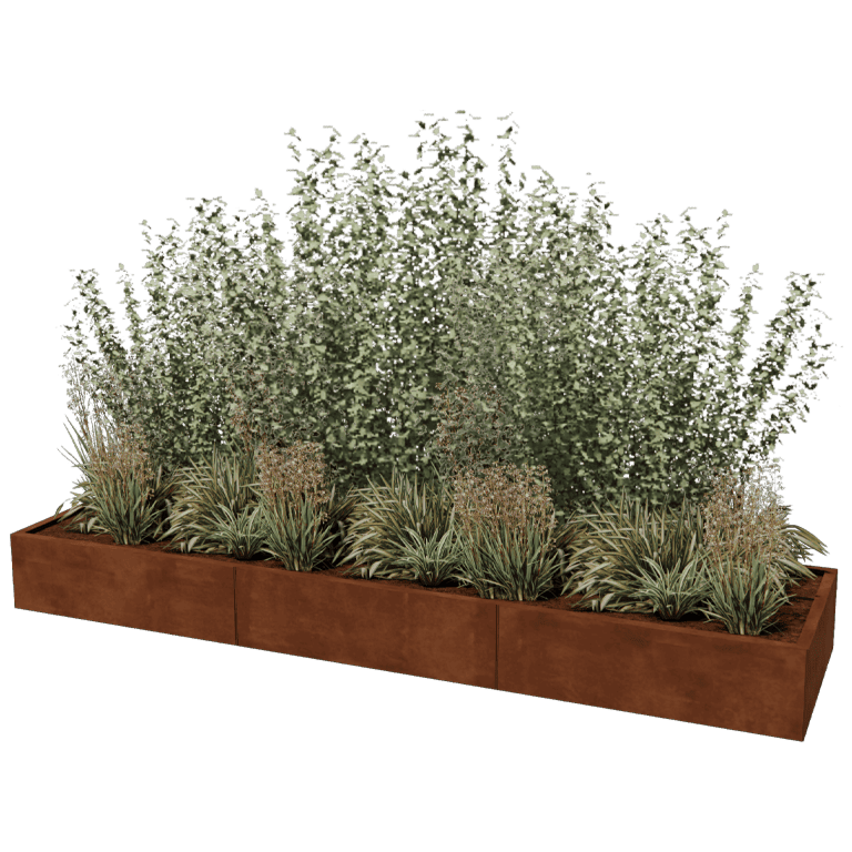 Dieses Pflanzgefäß ist ein modulares Stahlgefäß, das als Bausatz geliefert wird. Das Pflanzgefäß ist aus einzelnen Paneelen und Eckstücken aufgebaut. Die Pflanzgefäße können völlig blind miteinander verbunden werden. Es sind keine Befestigungselemente zu sehen. Durch unser modulares System sind auch sehr große Abmessungen möglich. Durch die Verwendung von Eckstücken sind einzigartige Formen möglich, die sonst nirgendwo als Standard erhältlich sind. Weitere Informationenfinden Sie in der Anleitung.
