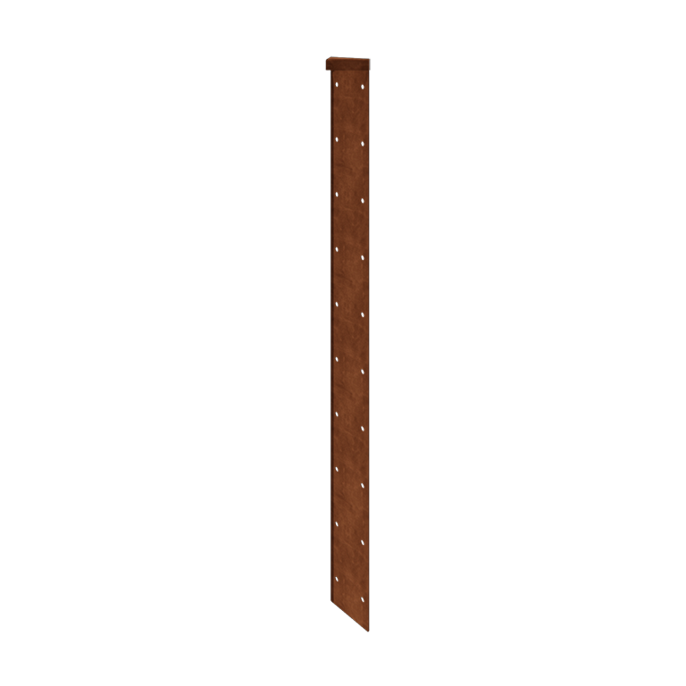 Dies ist ein 180°-Eckstück aus Cortenstahl mit einer Höhe von 100 cm, das für unsere modularen Kansas-Pflanzgefäße bestimmt ist.