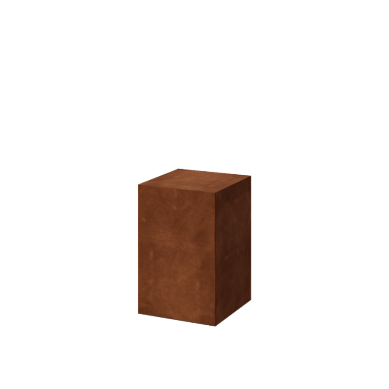 Der Sockel ist eine quadratische Säule aus Cortenstahl. Dank dieses langlebigen Materials kann der Sockel zu jeder Jahreszeit draußen stehen bleiben und muss nicht abgedeckt werden. Ihre Feuerschale, Gartenstatue oder Pflanze kommt so besonders gut zur Geltung.