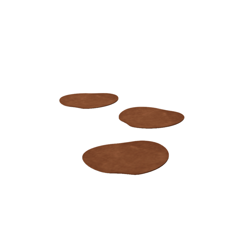 Die Trittplatte hat eine Materialstärke von 3 mm und misst 30 x 30 cm. Aufgrund ihres Gewichts liegt sie stabil auf Erde oder Rasen, ohne einzusinken. Die organische Form verleiht ihr ein verspieltes und zugleich elegantes Erscheinungsbild. Die Platte lässt sich leicht verlegen, da keine Montage- oder Befestigungsmaterialien benötigt werden.