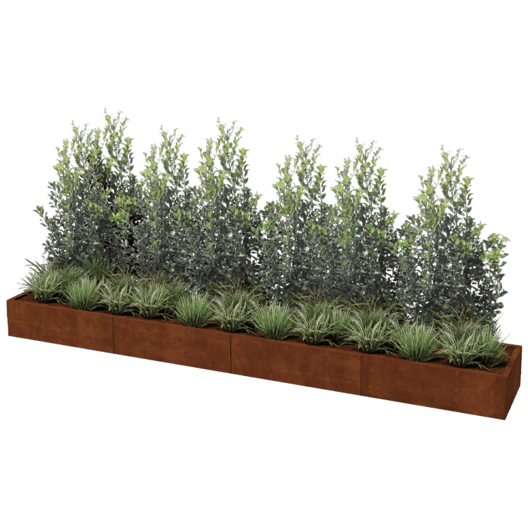 Dieses Pflanzgefäß ist ein modulares Stahlgefäß, das als Bausatz geliefert wird. Das Pflanzgefäß ist aus einzelnen Paneelen und Eckstücken aufgebaut. Die Pflanzgefäße können völlig blind miteinander verbunden werden. Es sind keine Befestigungselemente zu sehen. Durch unser modulares System sind auch sehr große Abmessungen möglich. Durch die Verwendung von Eckstücken sind einzigartige Formen möglich, die sonst nirgendwo als Standard erhältlich sind. Weitere Informationenfinden Sie in der Anleitung.