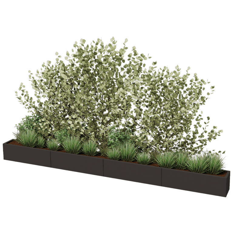 Dieses Pflanzgefäß ist ein modulares Stahlgefäß, das als Bausatz geliefert wird. Das Pflanzgefäß ist aus einzelnen Paneelen und Eckstücken aufgebaut. Die Pflanzgefäße können völlig blind miteinander verbunden werden. Es sind keine Befestigungselemente zu sehen. Durch unser modulares System sind auch sehr große Abmessungen möglich. Durch die Verwendung von Eckstücken sind einzigartige Formen möglich, die sonst nirgendwo als Standard erhältlich sind. Weitere Informationen finden Sie im Handbuch.