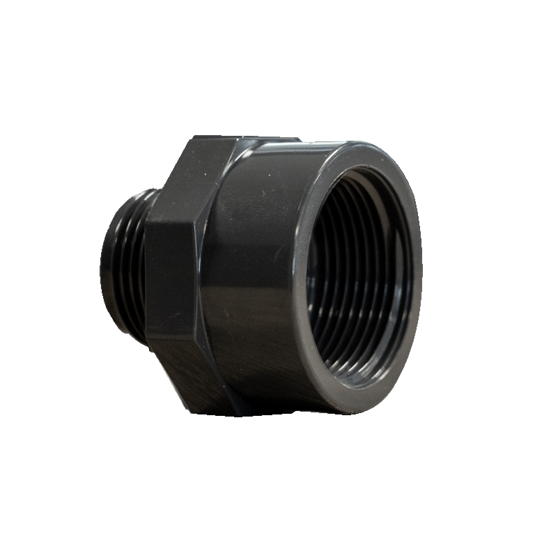 Dieses PVC-U Muffennippel mit reduziertem Außengewinde x Innengewinde ermöglicht den Übergang von 1 Zoll auf 1 ¼ Zoll innerhalb des Rohrsystems des Wassertisches.