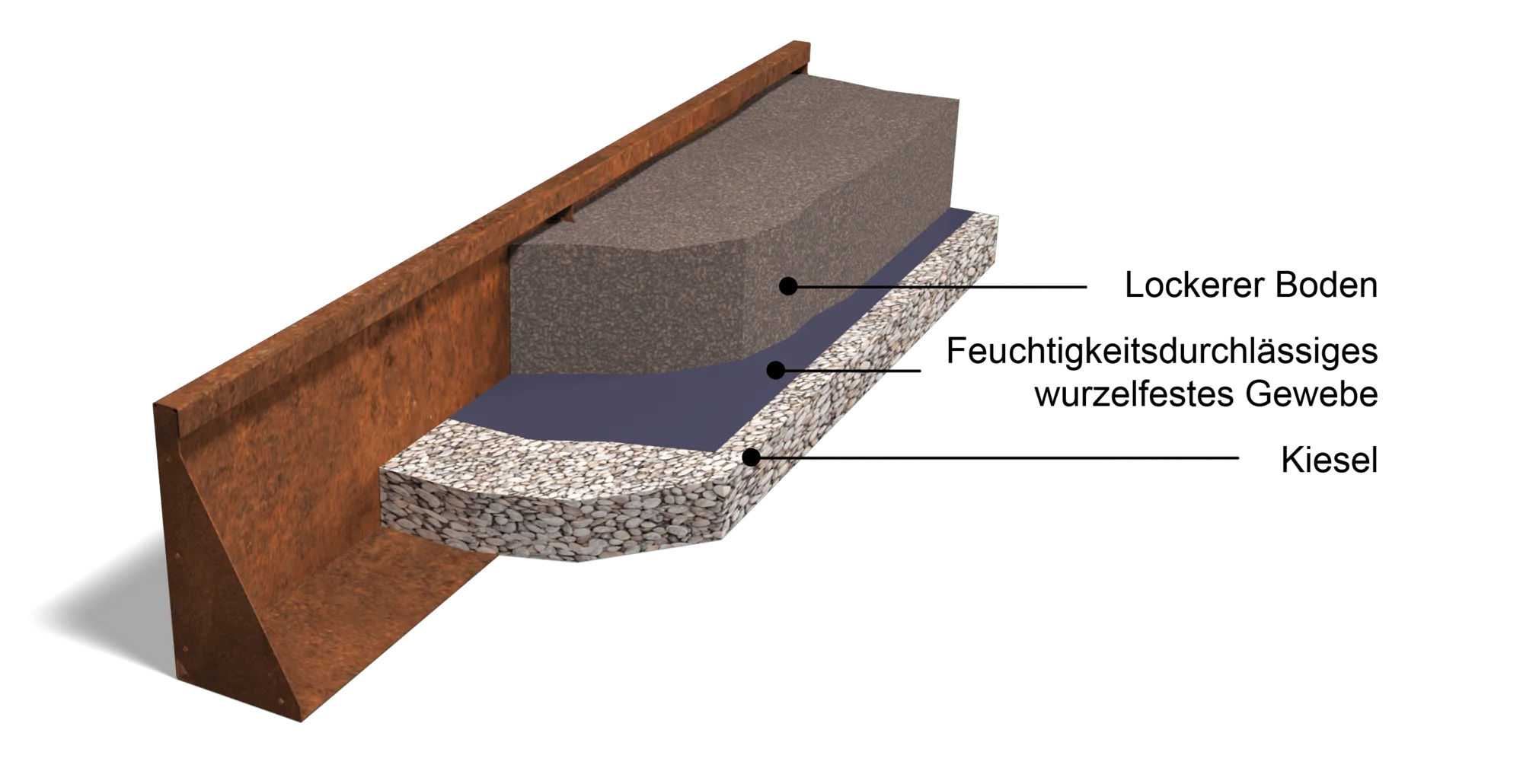 Achten Sie immer auf einen ausreichenden Freiraum (mindestens 1 cm) um die Stützwand herum, damit sich keine Feuchtigkeit ansammeln kann.